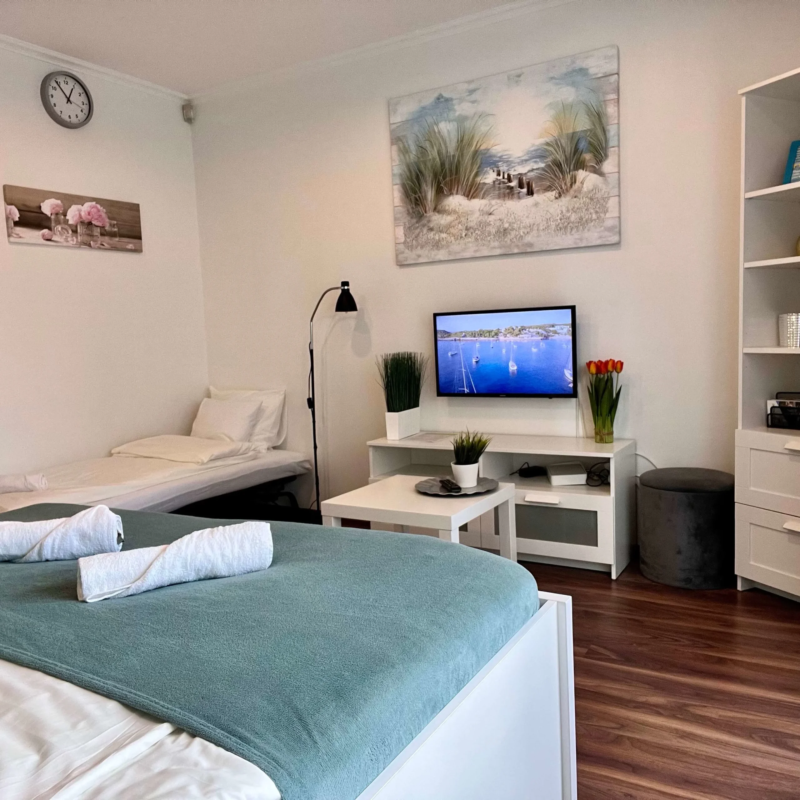 Fedezze fel Miskolcot ebből a modern, elegáns, 31 m²-es apartmanból, amely a belváros szívében, a sétálóutca közelében található! A 3. emeleten elhelyezkedő, légkondicionált lakás 3 fő számára nyújt kényelmes pihenést. Az egyterű nappali-hálószobában egy kényelmes queen méretű ágy és egy egyszemélyes fotelágy biztosítja a pihentető alvást.